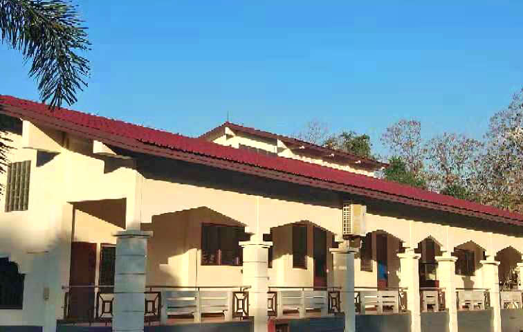 這是我上課的教學(xué)樓——語言學(xué)院,遵循著“看人先看臉”的原則,我們先看一下它的外在環(huán)境??催^前幾期介紹的小伙伴不難發(fā)現(xiàn),老撾國立大學(xué)的教學(xué)樓基本都是紅頂白墻,活潑跳躍的顏色彰顯著這所學(xué)校的朝氣。
