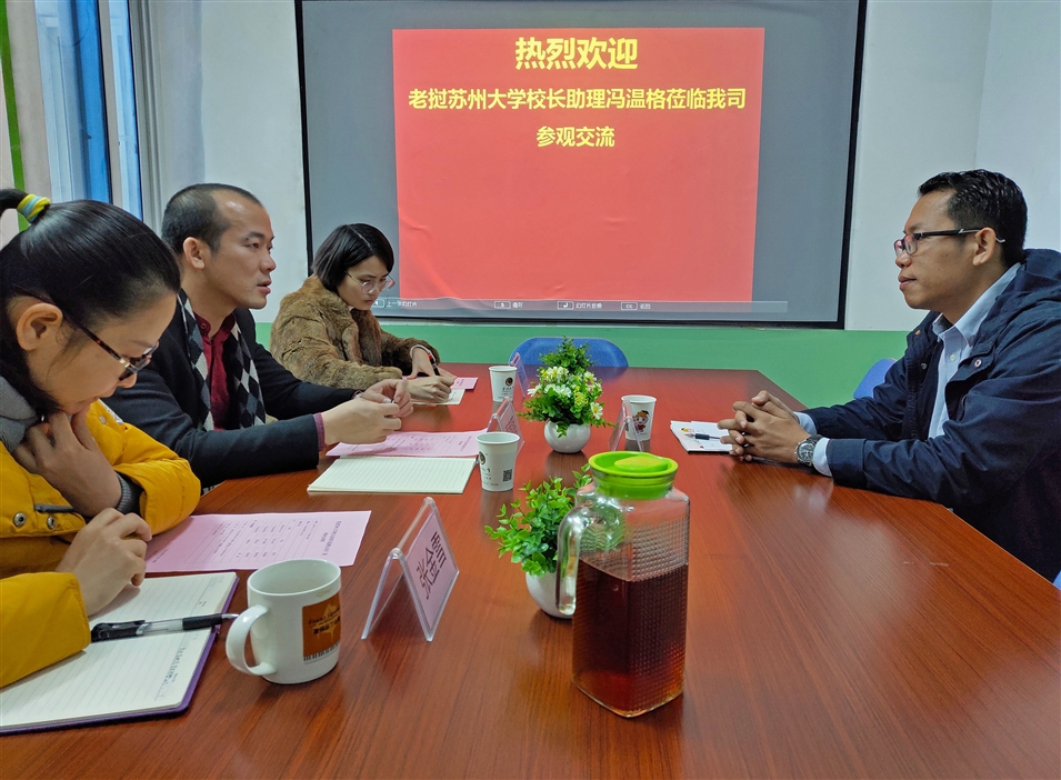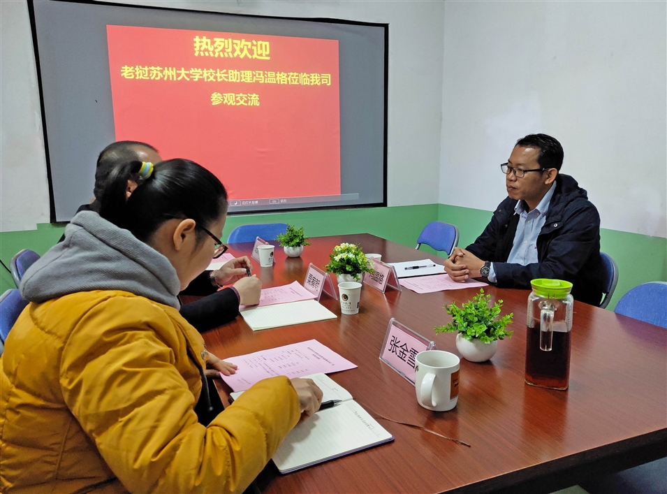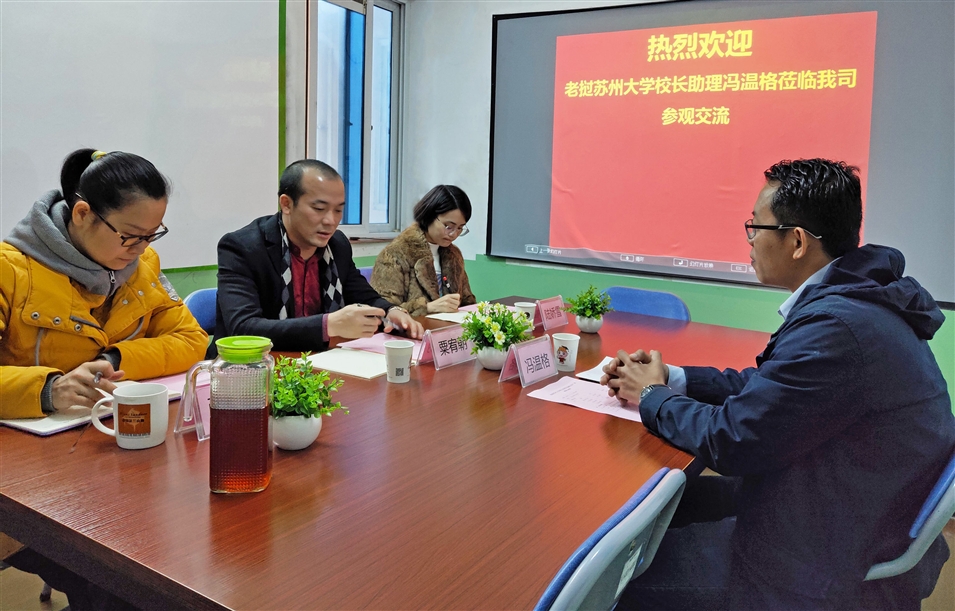 2019年1月7日,老撾蘇州大學(xué)校長(zhǎng)助理馮溫格拜訪廣西金沛教育,與廣西金沛教育執(zhí)行董事粟宥朝、校長(zhǎng)張金雪進(jìn)行座談。