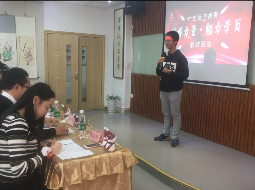 本次活動(dòng)由廣西金沛教育發(fā)展有限公司南湖校區(qū)主辦,旨在通過(guò)本次的匯報(bào)演講,促進(jìn)學(xué)員交流。金沛教育領(lǐng)導(dǎo)及金沛高級(jí)教師到現(xiàn)場(chǎng)觀摩了學(xué)員的演講,并為獲獎(jiǎng)選手頒獎(jiǎng)。