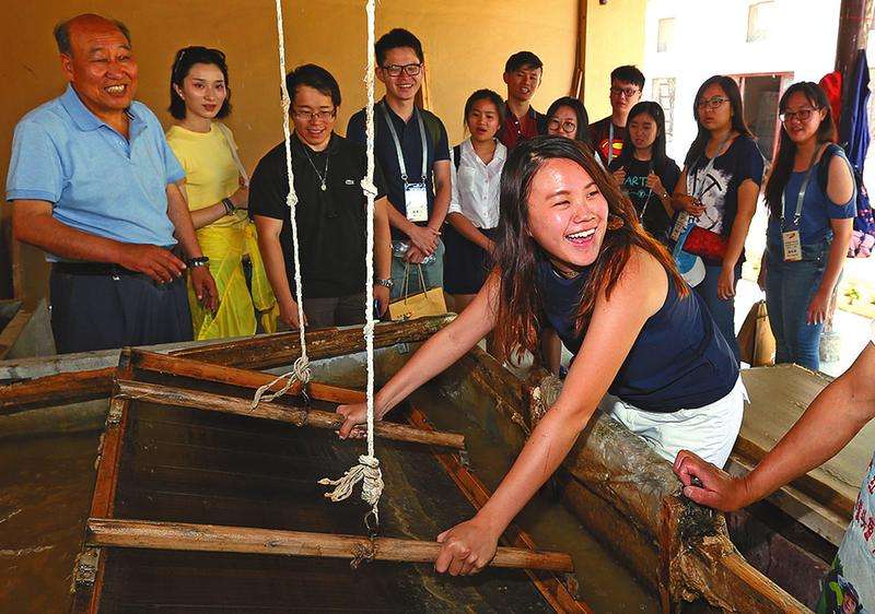 6月12日,在陜西省西安市起良蔡侯紙博物館,13位來自新加坡的青年朋友在工匠的指導(dǎo)下,學(xué)習(xí)體驗(yàn)古法造紙技術(shù),感受中國傳統(tǒng)文化的魅力。