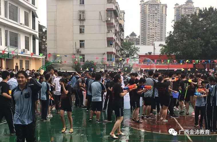 活動開始,高三學(xué)子進行“游龍翻身”的游戲,取“游龍翻身取金榜,十五中學(xué)我最棒”的含義。接下來身著東盟各國傳統(tǒng)服飾的學(xué)生為大家獻上了優(yōu)美的東盟國家舞蹈,展現(xiàn)了東盟各國的傳統(tǒng)舞蹈的魅力。隨后由學(xué)校校長帶隊,各年級老師共同參與,手持水瓢,將滿載祝福的水輕灑向所有高三學(xué)子,拉開了潑水狂歡的序幕。伴隨著歡快的音樂,潑水狂歡將本次活動帶向高潮,大家積極參與,手持水盆、小桶、水槍,你追我趕,相互潑灑,傳遞著著祝福與歡樂。以多種形式將各國文化風(fēng)情融入學(xué)生的心理教育中。