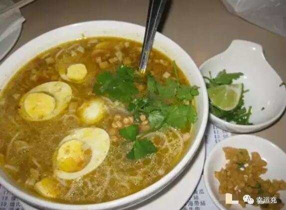 這種黏黏的黃色的粥一般伴米粉和腌制的雞肉或豬肉。粥上會(huì)淋一點(diǎn)辣椒油,配有腌菜和肉湯。這是一種盡管古怪可是十分招引眼球的組合,可是,如果你是一個(gè)熱愛香馥馥的滋味的吃貨,你一定會(huì)越來越喜愛它。