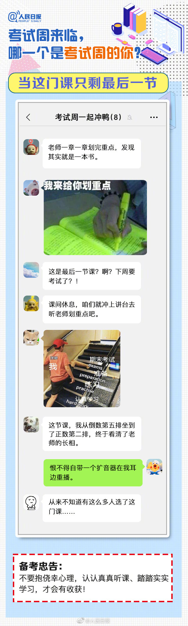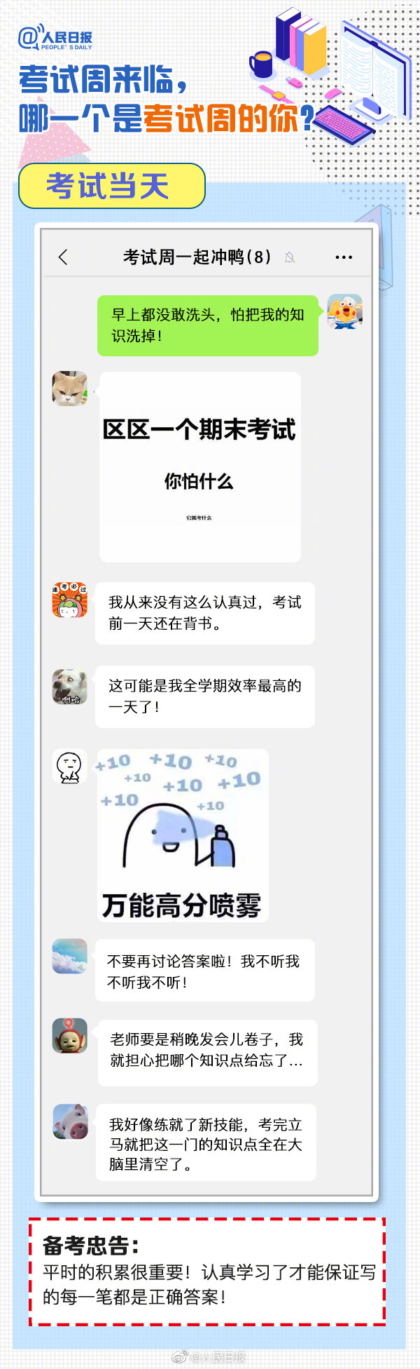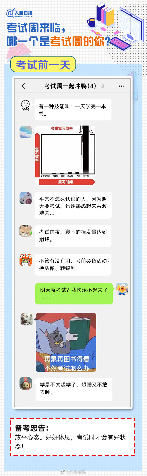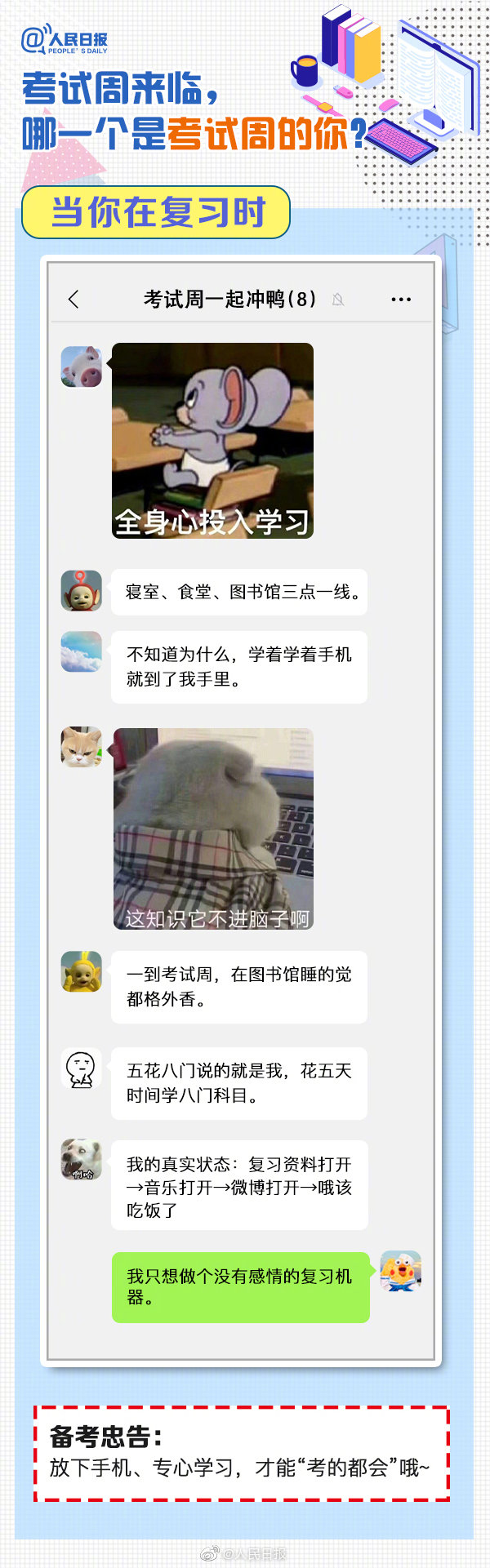 又到考試周,復(fù)習(xí)中的你,狀態(tài)如何?“寢室、食堂、圖書館三點(diǎn)一線”、“一天學(xué)完一本書”、“復(fù)習(xí)到頭禿”…這是考試周的你嗎?