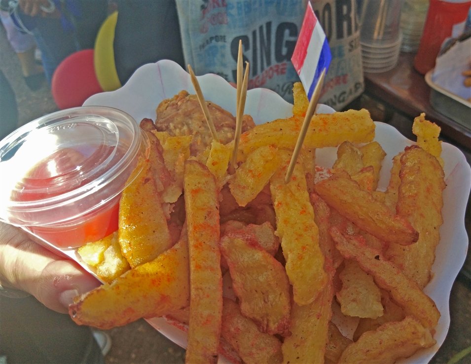 這是一場(chǎng)以各國(guó)美食為媒介的文化互動(dòng),文學(xué)院各系的學(xué)生在美食活動(dòng)現(xiàn)場(chǎng)展示了日本、中國(guó)、老撾、韓國(guó)、法國(guó)等歐、亞兩州不同國(guó)家的美食,比如中國(guó)的燒仙草、法國(guó)的薯?xiàng)l、老撾的肉串等,老撾國(guó)立大學(xué)的學(xué)生在暢享美食之際也在進(jìn)行飲食文化的分享與交流。