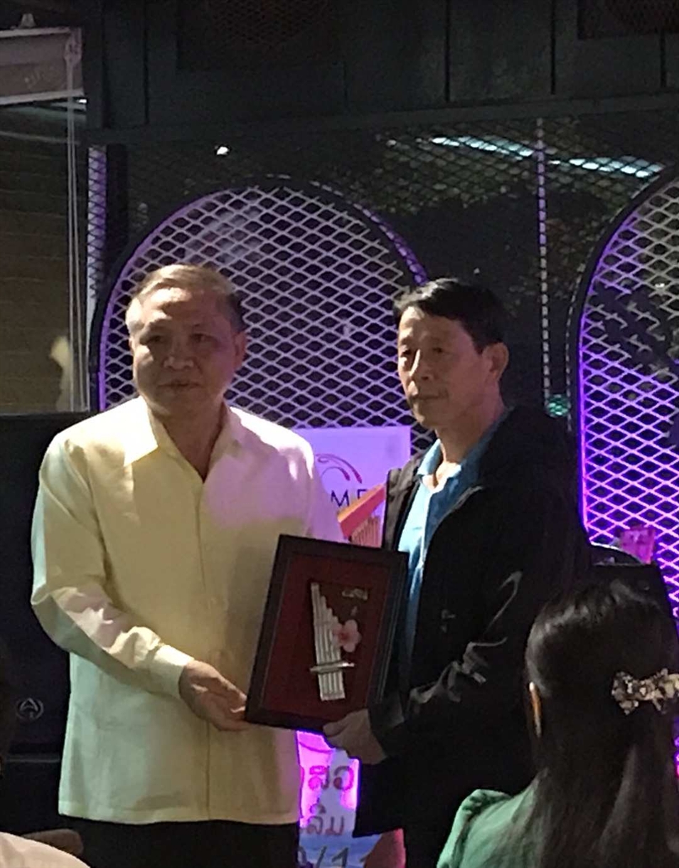 11號晚上老撾國立大學(xué)校長宋西·諾潘賽為劉傳書老師、王慶陽老師頒發(fā)紀(jì)念品,表示對兩位老師的感謝,感謝兩位老師對老撾國立大學(xué)的支持與幫助,并希望兩位老師以后能常來國立大學(xué)交流訪問。