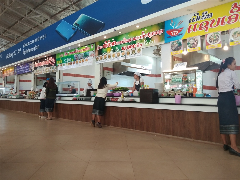 老撾國立大學的食堂帶有很濃郁的東南亞風格,與中國高校的密封式建筑不同,它的四面圍墻基本都以玻璃窗和柱子代替,因此通風和采光都很不錯,食堂里不會充斥著各種食物交雜的悶熱氣息。