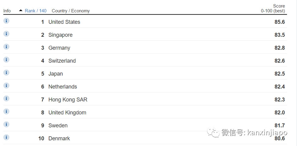 本次新加坡以2.1分的差距位居第二,其中在交通、衛(wèi)生和貿(mào)易開放方面表現(xiàn)尤為出色。