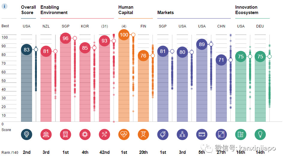 今年,世界經(jīng)濟論壇對評分進行了大幅調(diào)整,把未來技術(shù)驅(qū)動的經(jīng)濟成長作為導(dǎo)向,加入了多項新指標,從創(chuàng)新能力、開放性和靈活性等12項類別的98個要素進行綜合考察。