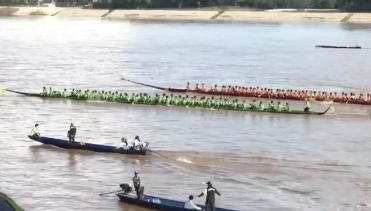 龍舟賽作為開門節(jié)的盛大活動之一,歷來受到廣泛關(guān)注。今年雖然因老撾各種災(zāi)禍頻發(fā)受到一定程度的影響,只有7支男子隊,5支女子隊報名參加,但場面還是熱鬧非凡。